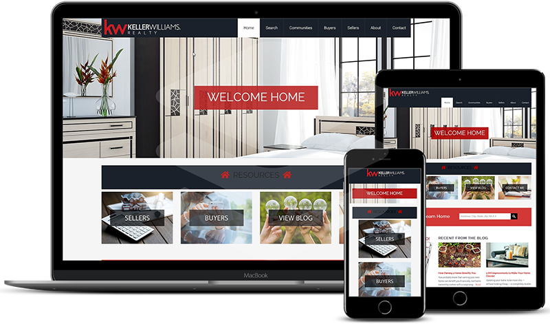 Resource Pages include: Blog, Contact, About, Home Value Page and KW Mobile App.